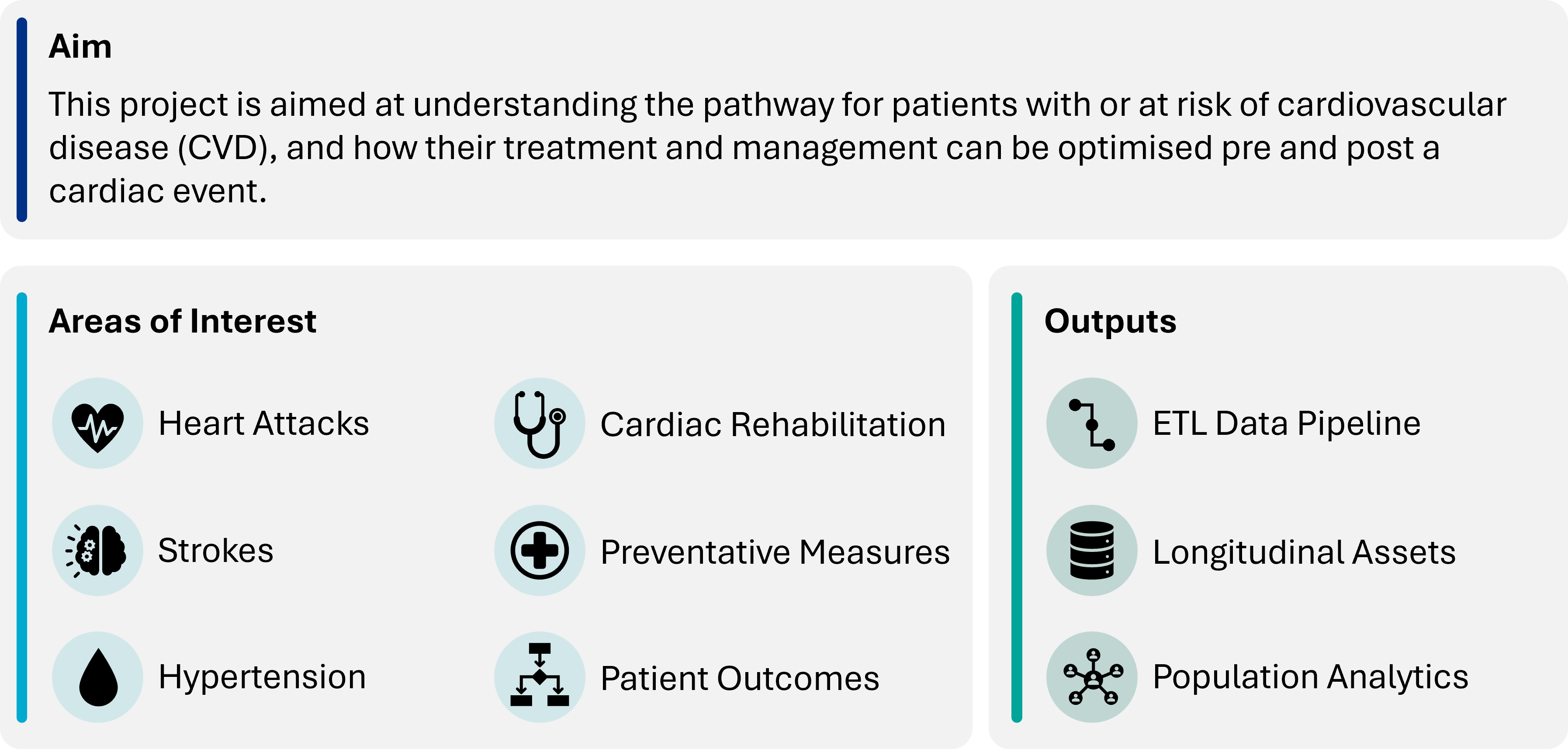 Historically, analysing the complete patient journey for CVD has been challenging due to disparate data sources, and the lack of a "single source of truth" detailing a patient's history.
