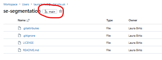 You can see which branch you are working from in the repository.