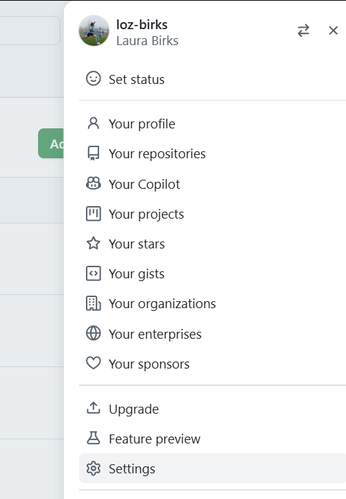 - Click on your profile in the top right and then Settings.