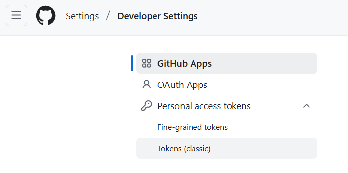 - Click the Personal Access Tokens tab on the left and then Tokens (Classic).