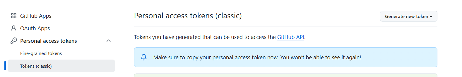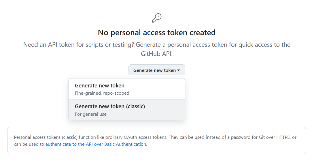 - Click Generate New Token, choose the (Classic) option if offered that choice.