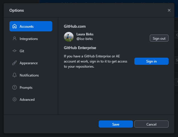 You will then need to open it up and you should be prompted to pop in your github username (you may need to validate this in the browser version- I can’t remember).