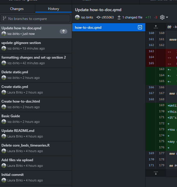 If you need to review or revisit any prior commits, you can see these in the History tab.