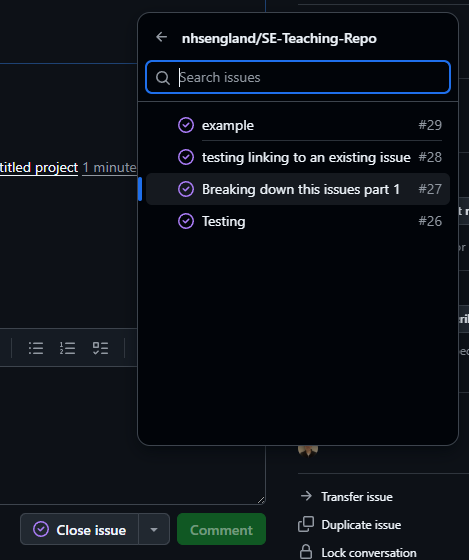 When closing as duplicate, it will prompt you to choose the issue that the issue your closing is a duplicate of. You may wish to close the newest duplicate, or the one with less information on the card, but it doesn’t matter too much as the closed issue information can be found on the duplicate issue card which remained open