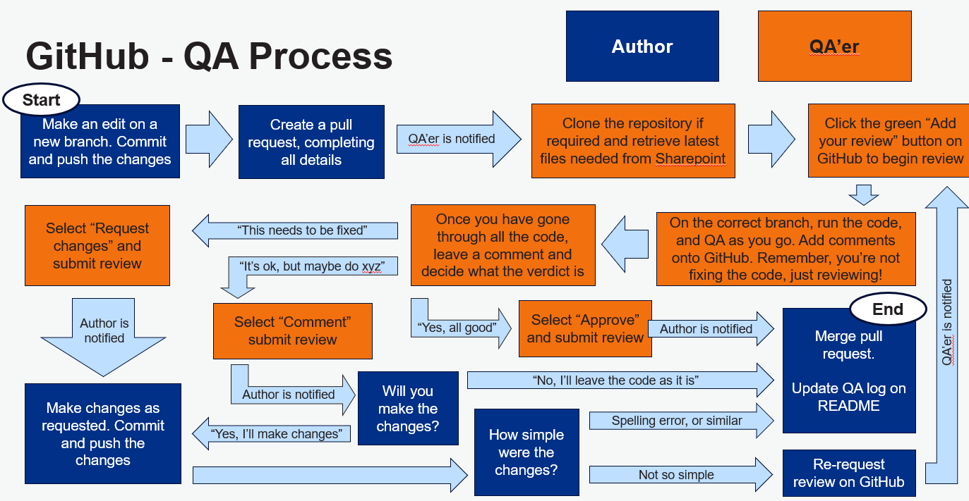 GitHub will provide an audit trail of changes made, when they were made, and who made them. This aligns nicely with the team’s QASAR process. It is also easy to roll back to an earlier version if needed.